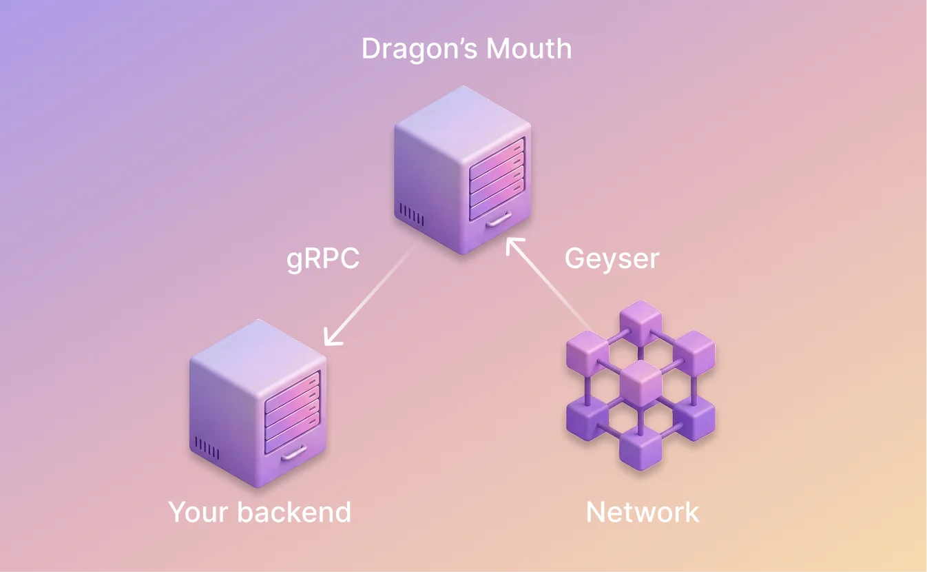 Dragon's Mouth is the Solana standard for high-performance gRPC streaming. It connects directly to the node's Geyser interface and delivers raw slot, block, and account updates with minimal overhead. It's designed for systems that need the earliest possible view of the chain and consistent data delivery under any load.