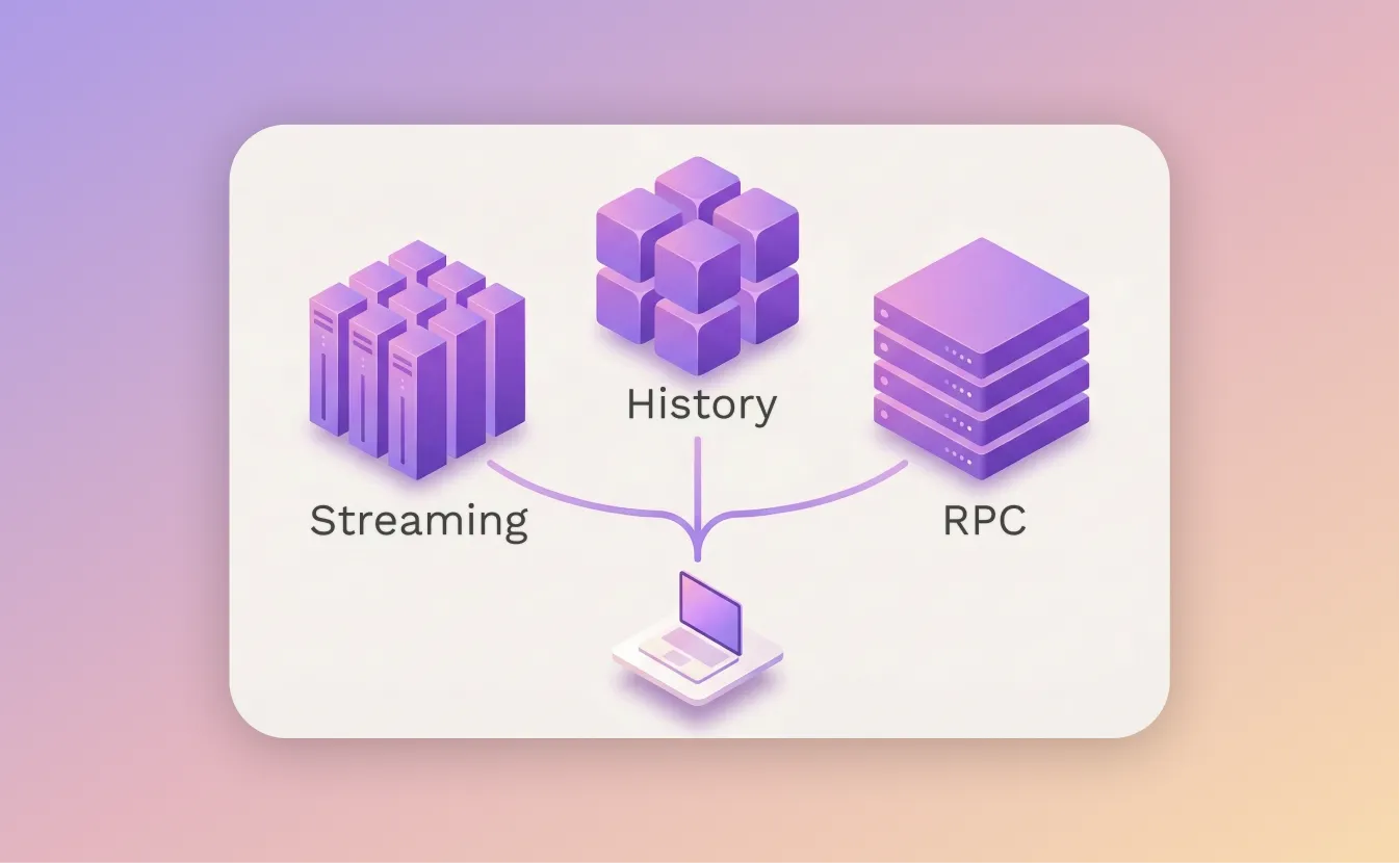 We cover every streaming use case, from ultra-low latency gRPC to reliable persistent streams to frontend WebSockets. Our custom indexes cut gPA times by 50x+, while DAS API endpoints unify and speed up all digital asset queries.