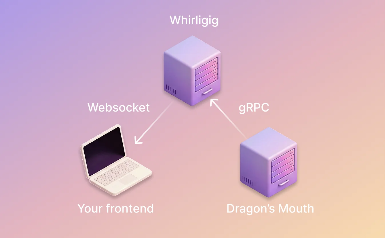 Browsers don't support gRPC directly, but UI workloads still require live chain updates. Whirligig bridges this gap by wrapping the high-performance Dragon's Mouth engine in an enhanced WebSocket interface optimised for the web. Your users see their balances update and transactions confirm milliseconds after they happen on-chain.