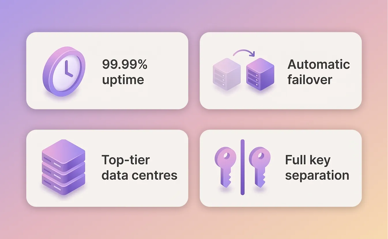 Your stream connects to a high-availability cluster, not a single server. We route you to the closest healthy region, and if a node falters, traffic instantly shifts to a healthy backup so your connection stays fast & stable.